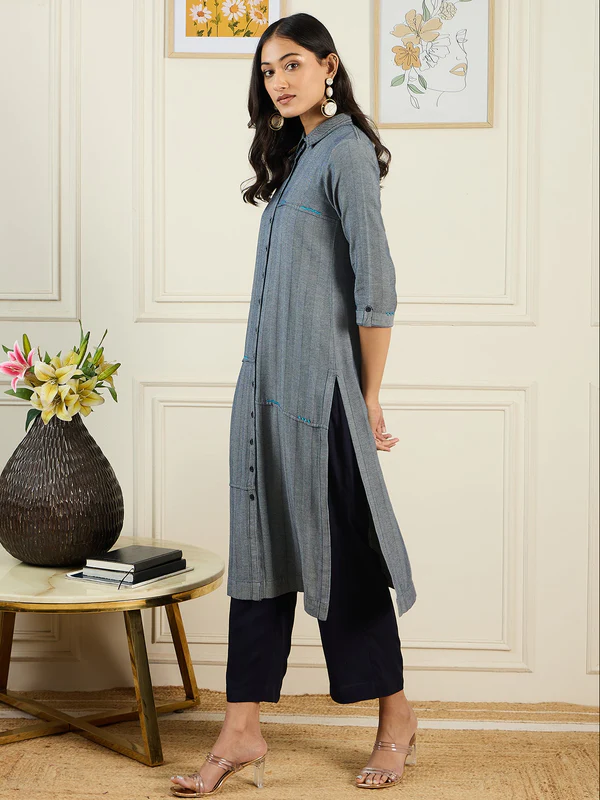 Make a statement this festive season with this grey velvet kurta set, a blend of